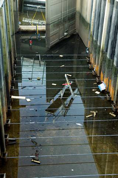 reparationsarbetet påbörjas. Slusskar och mellankanal tömdes