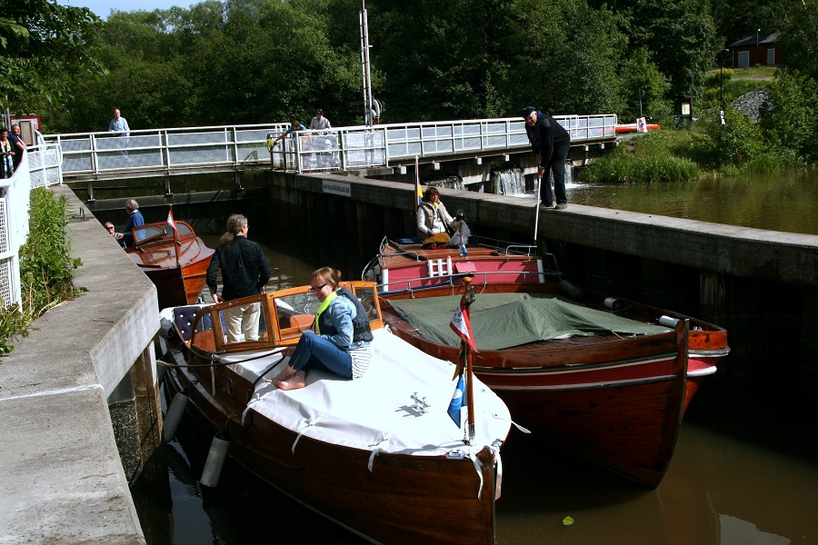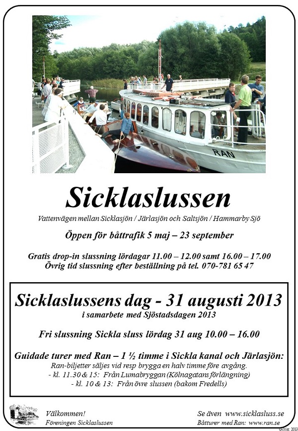 Slussåret 2013 får betraktas som en ovanligt fin båtsommar med mycket sol och lite regn. Under året har närmare 200 båtar slussats genom slussarna, varav 40 passade på under slussdagarna den 9 juni och 31 augusti. Just slussdagarna lyckades visserligen pricka in två dagar när vädret var lite mer dramatiskt, vilket framgår av bilderna ovan.