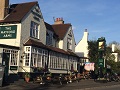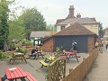 Annars passerar man genom Old Woking strax efter sluss nummer 11, 10 och 9. En förstad till Woking vars borough har dryga 90.000 invånare. Dags för en vätskepaus igen, och fastnade för en Fish & Chips med en lokalt brygd Real Ale på The Mayford Arms. Puben ligger vid korsvägen nära kanal och bilväg. Slog mig i slang med några mycket trevliga motorcykelåkare som vilade sina gamla Thriumphs just där.