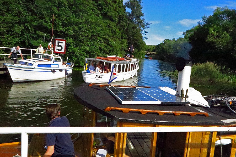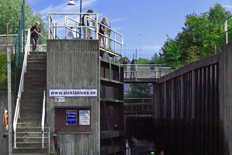 Sicklaslussens dag 2016 firades som vanligt i strålande solsken med ca 30 slussande båtar. Foto: Ingemar Åkerblom